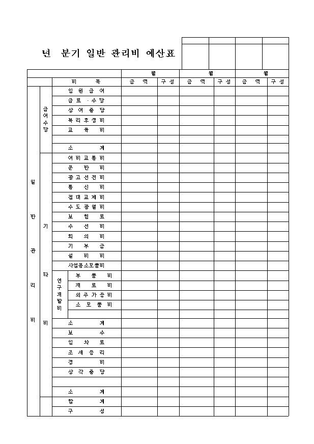 (년,분기)일반관리비 예산표1 양식 미리보기