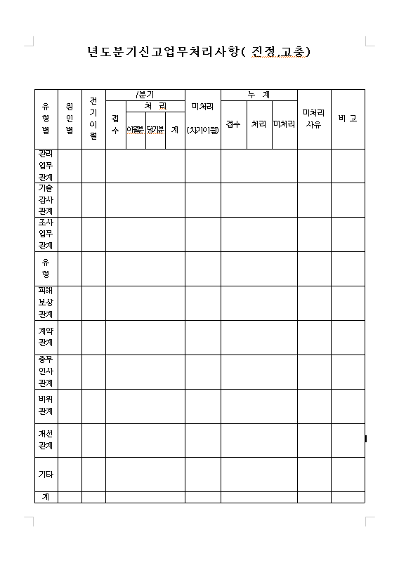 (년도,분기)신고업무 처리사항 양식 미리보기
