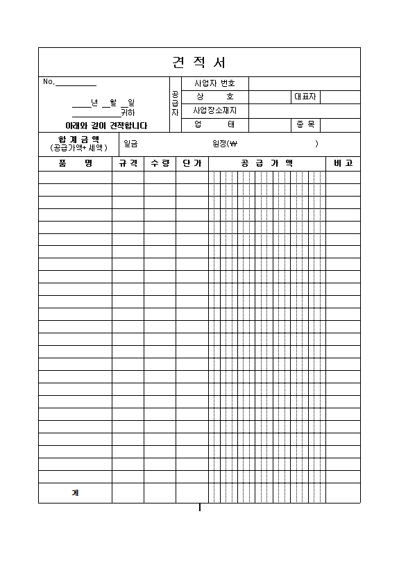 견적서(표준) 양식 다운로드 (0) | 2022.11.24 |