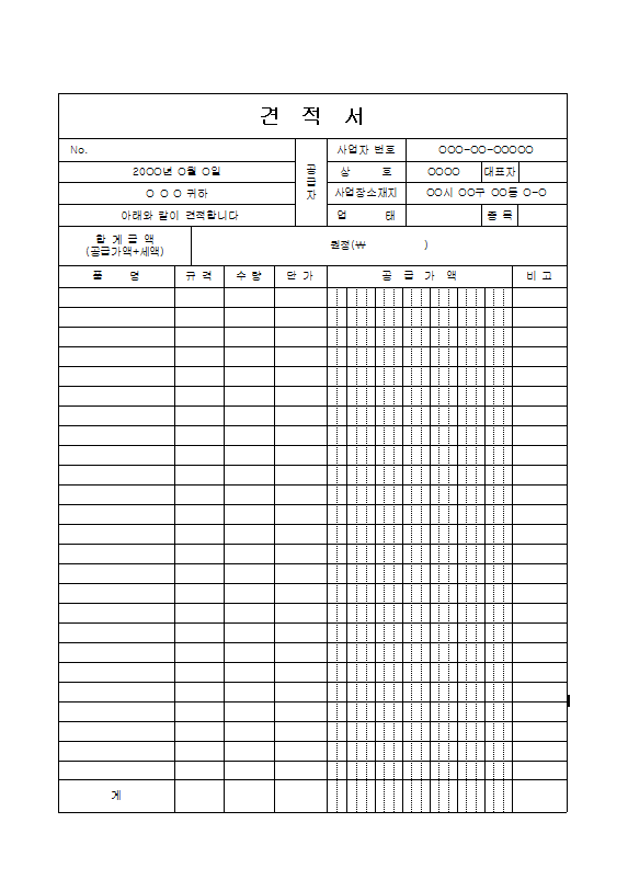견적서7(앞,뒤) 양식 다운로드 (0) | 2022.11.27 |