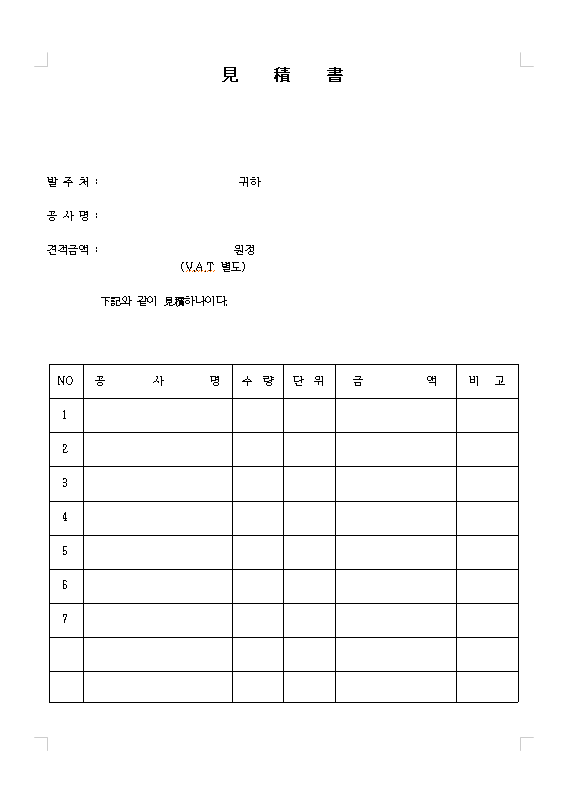 견적서7(앞,뒤) 양식 다운로드 (0) | 2022.11.27 |