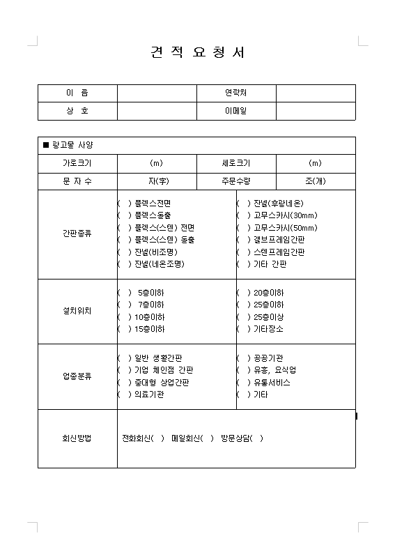 | 견적의뢰서1 양식 다운로드 (0) | 2022.11.27 |