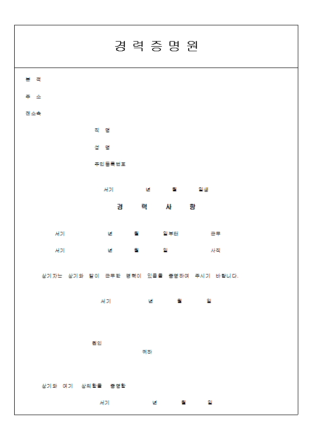 | 경력증명원1 양식 다운로드 (0) | 2022.11.30 |