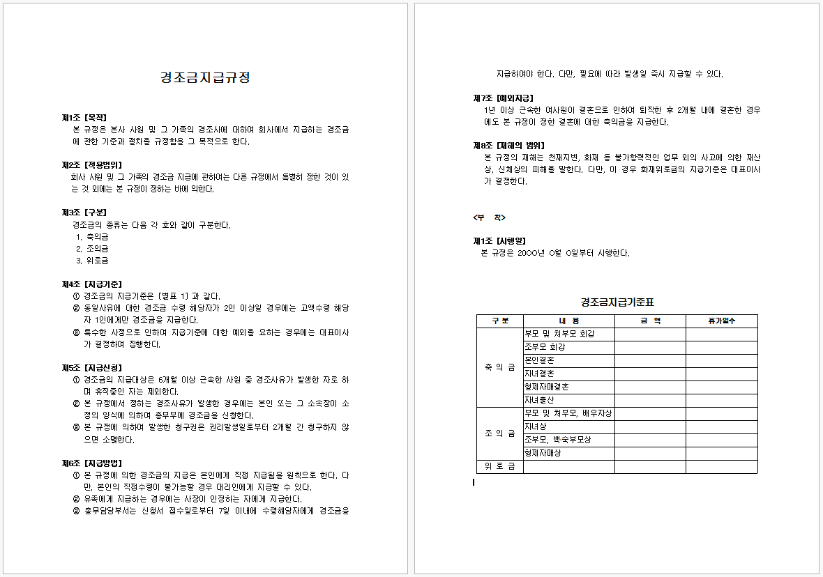 경조금지급규정 양식 다운로드