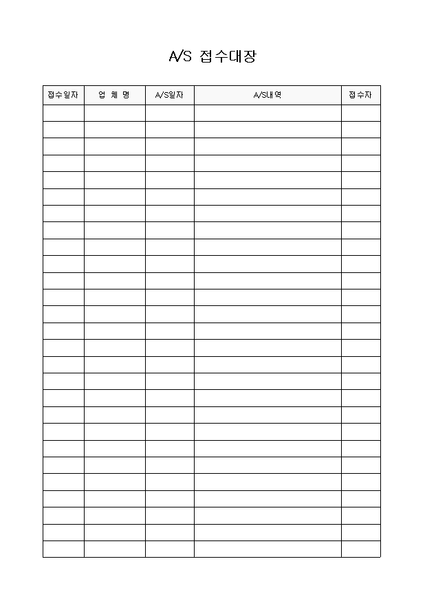 AS접수대장 양식 다운로드