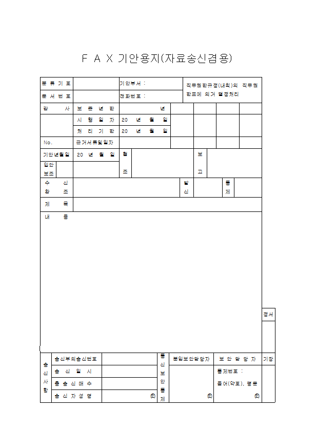 FAX기안용지(자료송신겸용) 양식 미리보기
