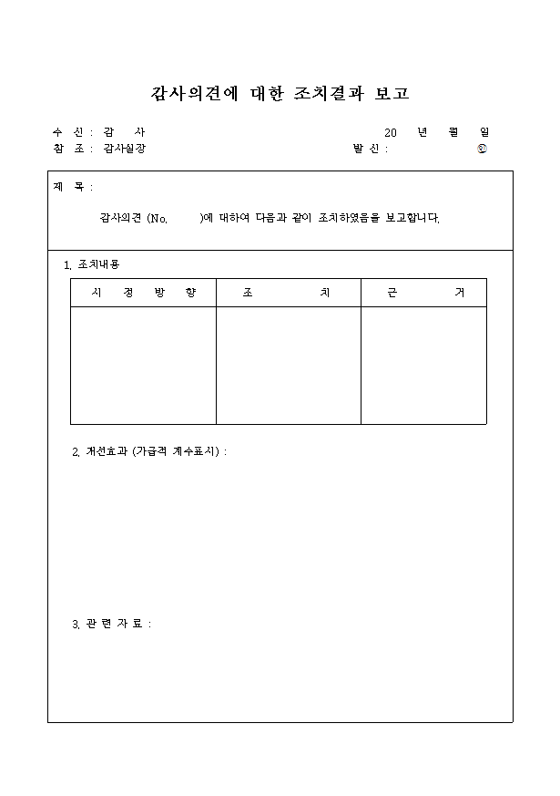 감사의견에 대한 조치결과 보고 양식 미리보기