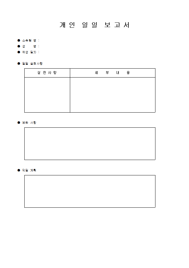 개인 일일 보고서 양식 다운로드